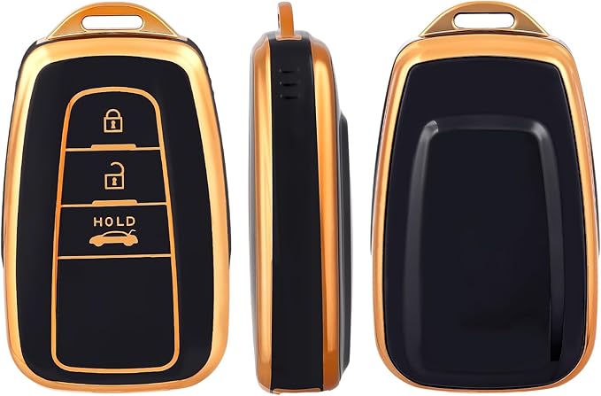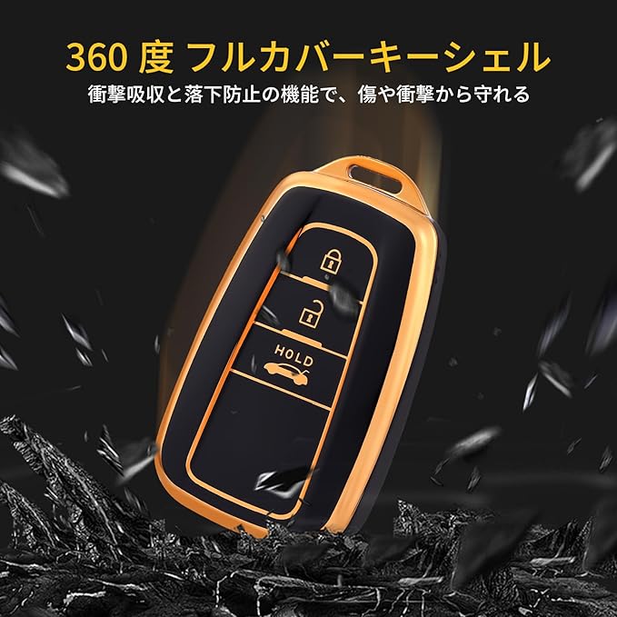 [OFF WE GO] トヨタ スマート キーケース適合 Toyota RAV4 50系 プリウス 50系 C-HR 新型 カローラカムリ70系 クラウン220系 ランドクルーザー プラド 150 後期 専用 3ボタン リモコンケース 高級 TPU キーカバー 軽量 衝撃防止 傷防止 落ちにく - ブラックゴールド