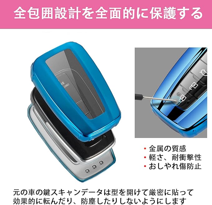 【TPU素材】:トヨタ キーケースにはTPU素材を採用しており、軽さを確保した上で耐久性も備えています。TPU素材のキーケースはオイル耐性、耐水性、カビ耐性、防塵性があります。車の鍵を腐食や破壊からしっかり守られ、鍵の形状を保つことができる。摩擦に強く、割れにくく、軽くて長持ちし、車のキーをキズや摩耗を防止、全面的保護します。