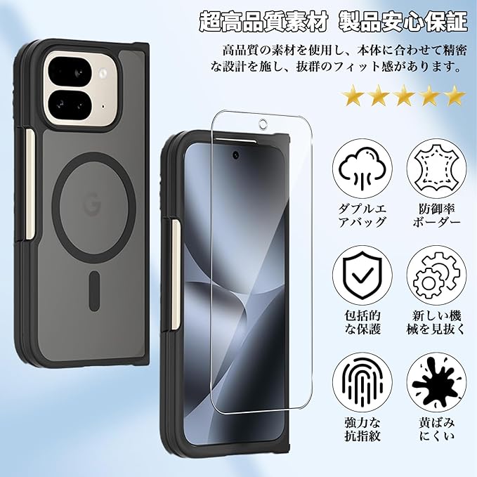 【1個+2枚セット】For Google Pixel 10 Pro Fold ケース(1個 MagSafe対応)+ガラスフィルム(2枚) Pixel 10 Pro Fold 対応 保護ケース Greerass ガラスフィルム付き 薄型 超軽量 耐衝撃 擦り傷防止 指紋 汚れ防止 手触り良い 着脱簡単 (ブラック)