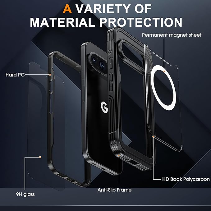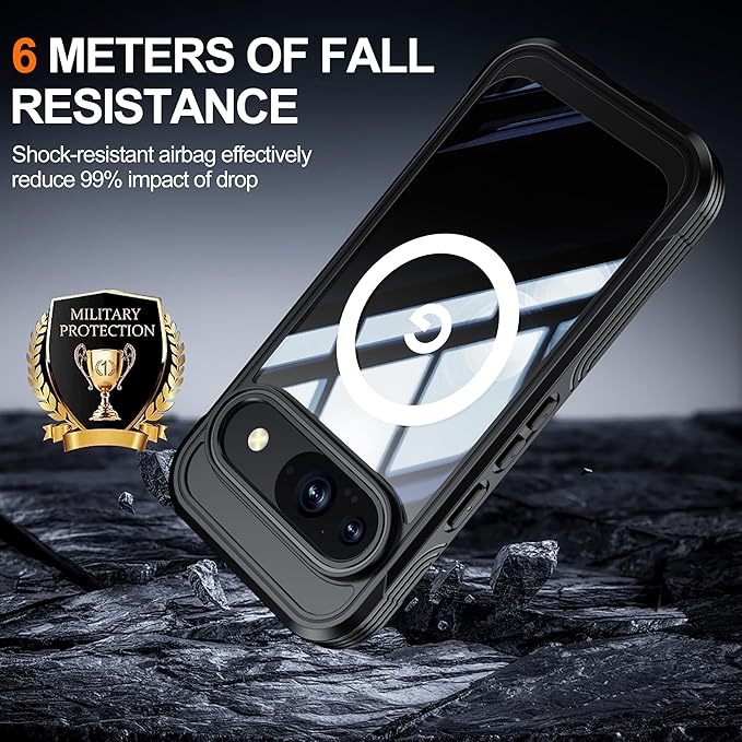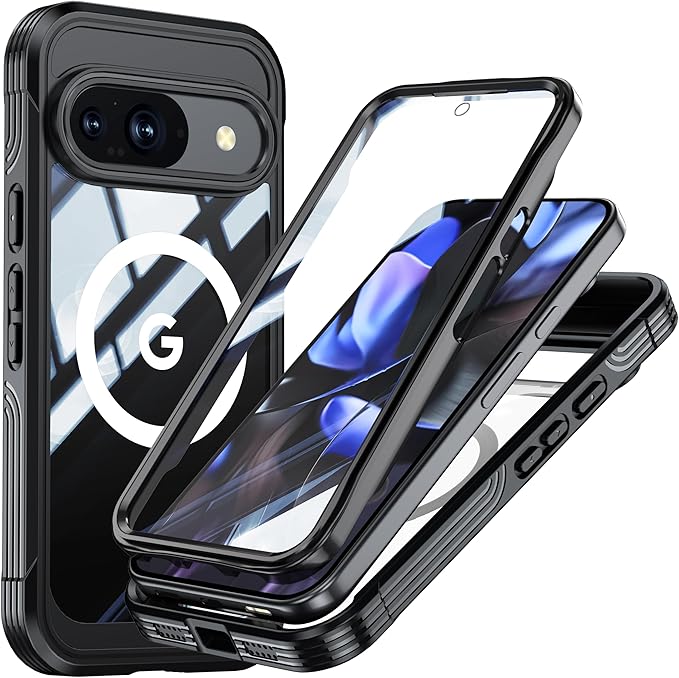 Google Pixel10 / Pixel 10 Pro ケース MagSafe対応 全面カバー 両面ケース ガラスフィルム付き 360度全面保護 ピクセル10 プロ カバー 耐衝撃 アウトドア,ブラック