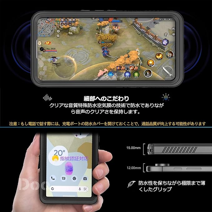 【強防衝撃力・360 保護】:軍用MIL規格810G-516防振材料が採用されていますので、衝撃にとても強いです。Google Pixel 10 Pro XL 防水ケースの嵌め込み式前カバーと透明バックカバーの組み合わせにより、360 全方位からGoogle Pixel 10 Pro XLを保護してくれます。それに、両サイドに0.5㎜ぐらいの突起があり、手元から滑り落ちることは心配なくなりません。 ご注意:ご 使用の前に必ず携帯の代わりに一枚の紙をケースに入れて、Pixel 10 Pro XL 防水ケースは水没して30分間の防水試験を行 ってください