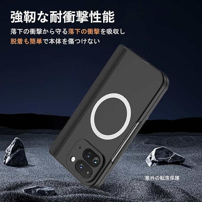 【カメラ保護&ヒンジ保護、たっぷり安心感】新しくグレードアップされたヒンジ保護は、傷や落下から全方位でスマホを守り、180 の開閉もスムーズ。万が一の落下時でも衝撃をしっかり吸収し、ヒンジ部分へのダメージを防ぎます。数万回の開閉にも耐え、長期間にわたって快適な使用感を維持できます。さらに、カメラ部分は精密にくり抜かれており、レンズをしっかり守りながら撮影に一切影響しません。
