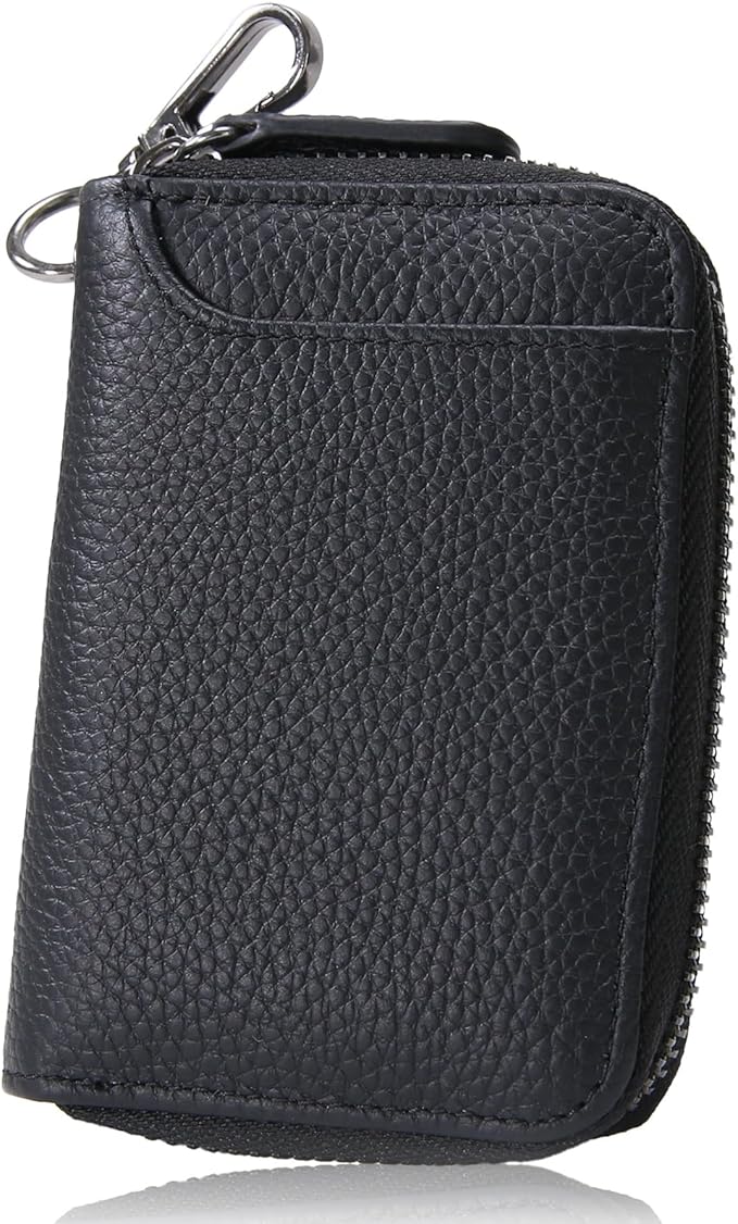 [STREAM] 極上な革の美しさ キーケース メンズ 本革 スマートキーケース カード入れ付き 小銭入れ 一体型 [財布も鍵もこれひとつ] レディース 6連フック カラビナ ミニ財布 日本デザイン (ブラック)