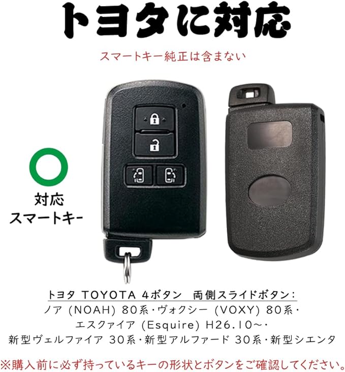 [KUNIO] トヨタ専用 4ボタン両側スライド キーケース キーカバー キーホルダー 本革 手縫い toyotaに対応 ノア80系 ヴォクシー80系 エスクァイア アルファード ヴェルファイア30系 シエンタ カムリ に適用 車用 アクセサリー 保護 レザー