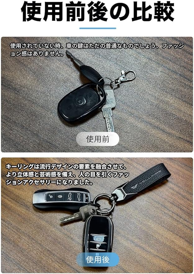 [超耐久性] 新たにアップグレードした製品素材は、高級感と耐久性をさらに追求。厳選された牛革を使用し、独自開発の加工技術でより深みのあるツヤと柔らかな風合いを実現。防汚・防水コーティングを施すことで、日常使いにも最適な機能性を備えています。金属部品にはサビに強い特殊メッキを採用、長期間美しい状態を保ちます。【パッケージ内容】本革 キーホルダー 1、小さいなキーリング 2、D式リング 1、ドライバー 1、日本語の説明書 1。