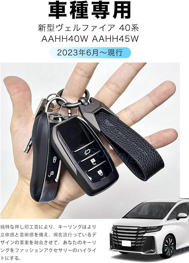 SUVVNE(スヴニ) ヴェルファイア40系専用 キーホルダー 高級本革 レザー VELLFIRE 車用キーホルダー キーリング キーチェーン 車専用ロゴ 手触りいい 紛失防止 車 アクセサリー 退職祝い 記念品 ビジネス 男性 贈り物 ビジネス ギフト プレゼント 日本語の説明書付き (ブラック)