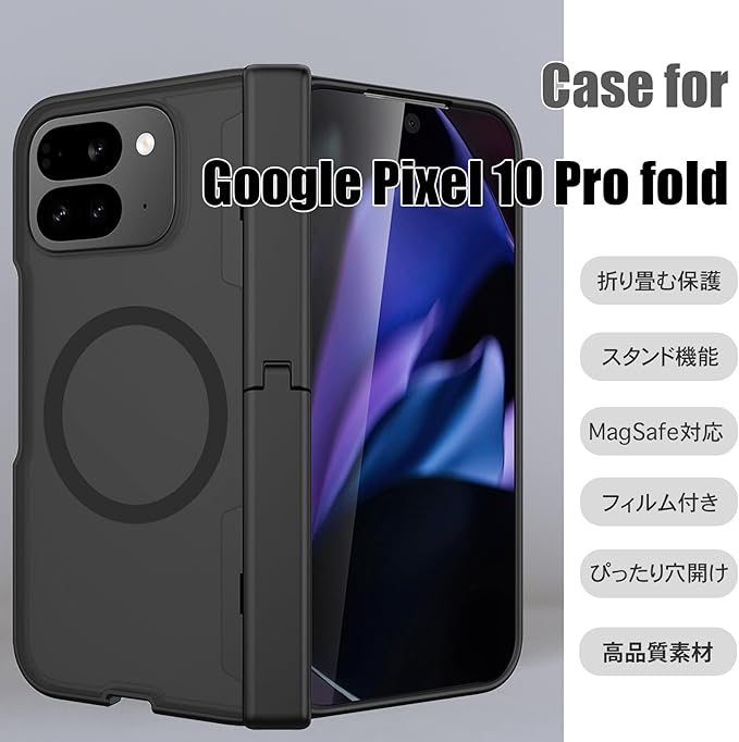 GYOKUYU ケースfor Google Pixel 10 Pro fold[MagSafe対応|ヒンジ付き|フイルム付き|スタンド機能]ブラックマット半透明 グーグル ピクセル10 プロ フォールド マット半透明携帯カバー おしゃれ すべり止め&指紋防止 シンプル 耐衝撃 (ブラック)