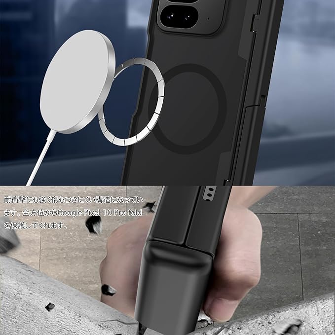 【ヒンジ付き|折り畳む保護|高品質素材】ヒンジ付き、折り畳む部分も保護しています、落下や衝撃や傷から折り畳む部分をしっかり守ります。インナーケースはをPC材質採用して、割れにくいです。全面保護で、傷などからGoogle Pixel 10 Pro fold本体をガードしています。見た目が綺麗、オシャレ感up!