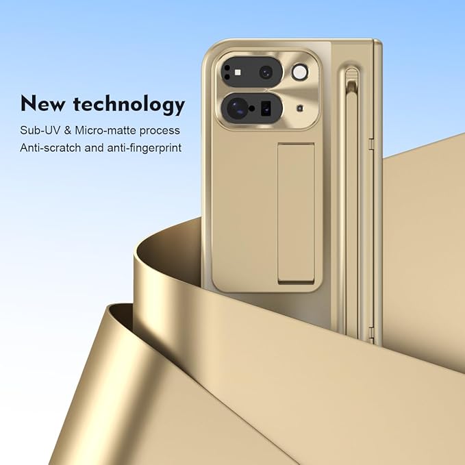 GG Pxl 10 Pro Fold / 9 Pro Fold専用 ケース 全面保護+強化ガラスフィルム+きんぞくラッカ+ペン 隠しスタンド機能 ヒンジ保護 ワイヤレス充電サポート 多機能統合型 手帳型 薄型 軽量 携帯カバー 面白い 個性 二層構造キラキラ 衝撃吸収 指紋防止 Beautycatcher - 金
