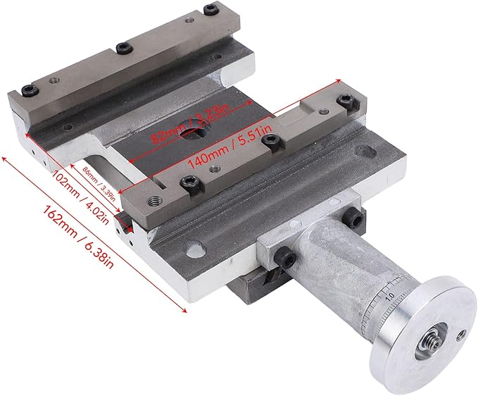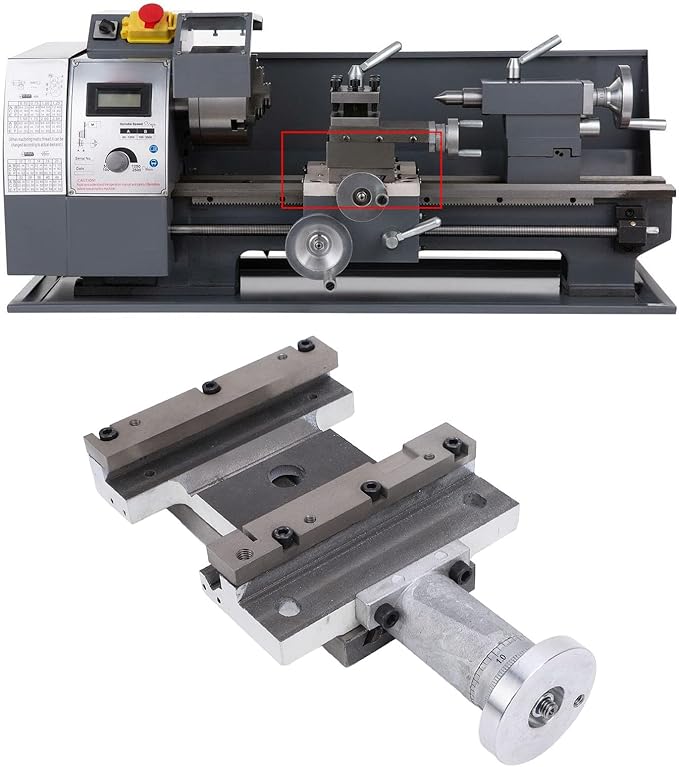 調整可能な作業位置: ベッドガイドレールに簡単に取り付けられるように設計されており、ミニ旋盤フライススライドはこれらのレールに沿って長手方向に調整して、作業位置を最適化できます。この調整機能により、さまざまな加工作業に必要な柔軟性が得られ、さまざまな長さの材料の加工が容易になります。