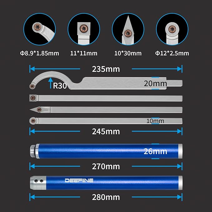 人間工学設計:旋削工具は研磨ハンドルを1つ備え、手触りが快適である。また、より深いシーンで使用できる拡張ハンドルも搭載されており、アルミナ合金ハンドルはグリップ、快適さ、耐久性に優れています。安全な選択にします。もっと手が必要なら。。。DEEFINEストアにアクセスしてください。多くの製品をお選びいただけます。