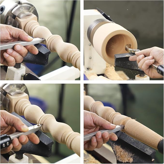 鋭利で簡単:当社の硬質合金旋削工具キットは、旋盤上で任意のワークピースを迅速に加工するために使用できます。木工旋盤工具セットは、異なる研削効果のために設計された4種類の工具によって滑らかで清潔な切削効果を提供することができる。これにより、刃が鈍くなった場合に刃を容易に交換できるため、研削やホーニングに時間を節約できます。