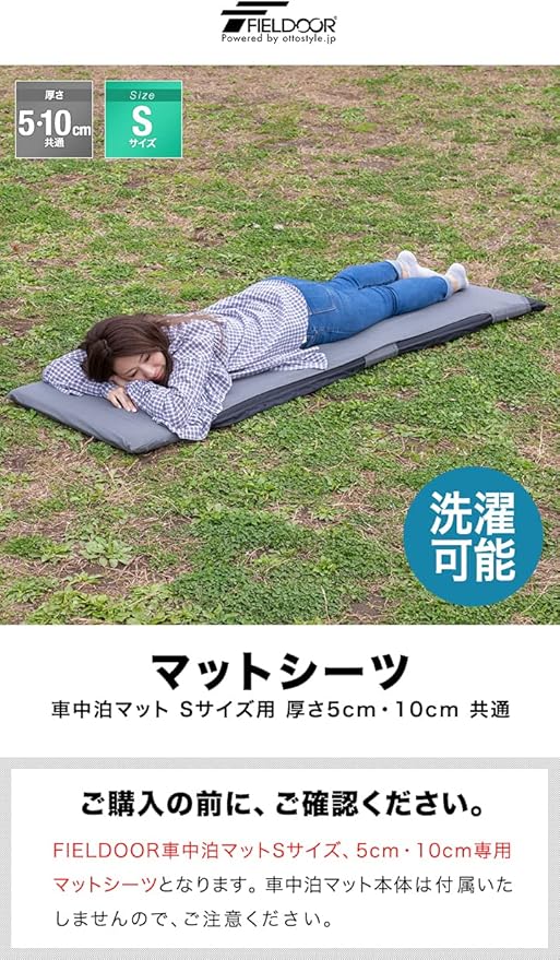 FIELDOOR 車中泊マット Sサイズ用 マットシーツ 【グレー】 厚さ5cm 10cm 共用 洗濯可 簡単装着 専用シーツカバー アウトドア キャンプ レジャー