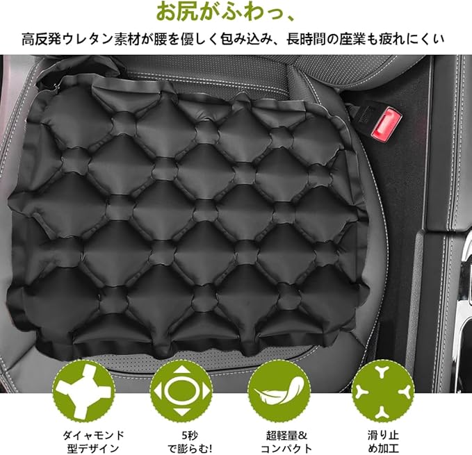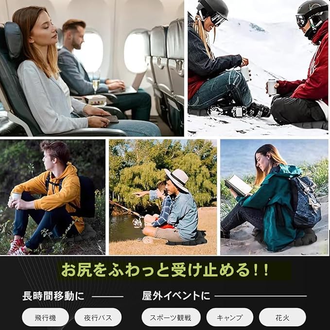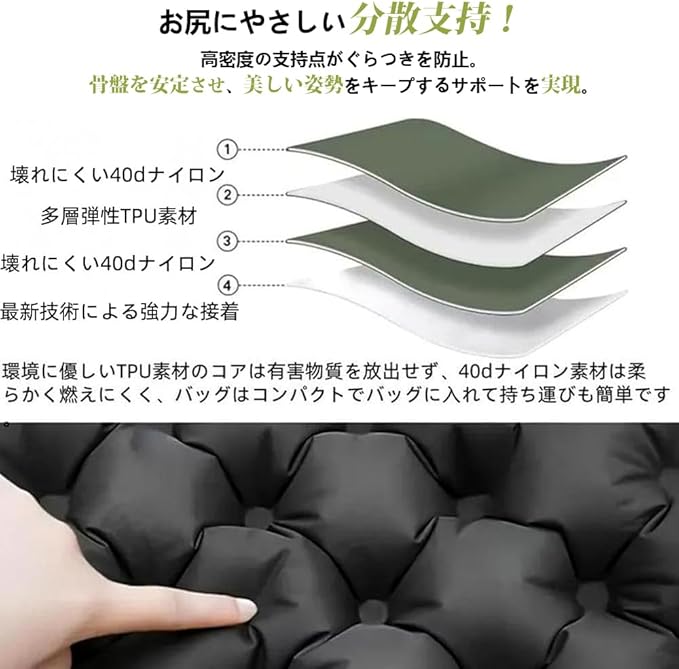 エアクッション レジャーシート 厚手 一人用 エアー 座布団 3D 体圧分散 折りたたみ座布団 軽量 「空気感」お尻 クッション 防水 飛行機 夜行バス 花見 釣り 公園 バス 旅寝工房