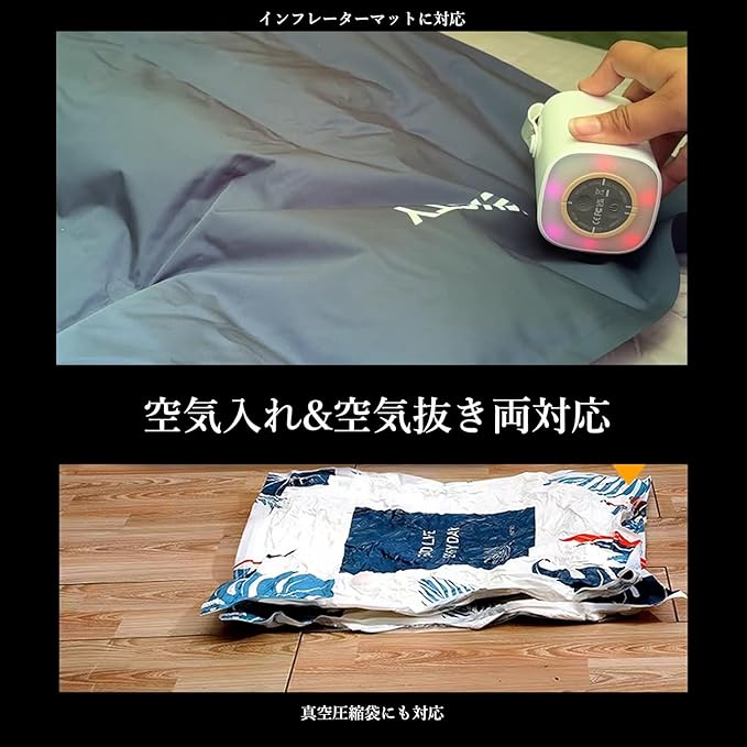 空気入れ 電動 プール 浮き輪 インフレーターマット ゴムボート エアベット 空気入れ 空気抜き 両対応 圧縮袋 吸引機 電動ポンプ 電動エアーポンプ 小型 【過熱保護&増圧機能&ライト付き】5Kpa
