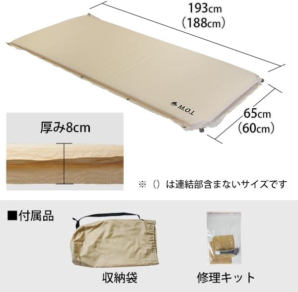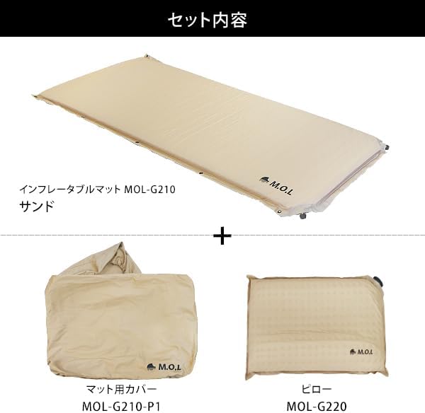 M.O.L 極厚インフレータブルマットS (サンド) MOL-G210 +カバー+ピロー付