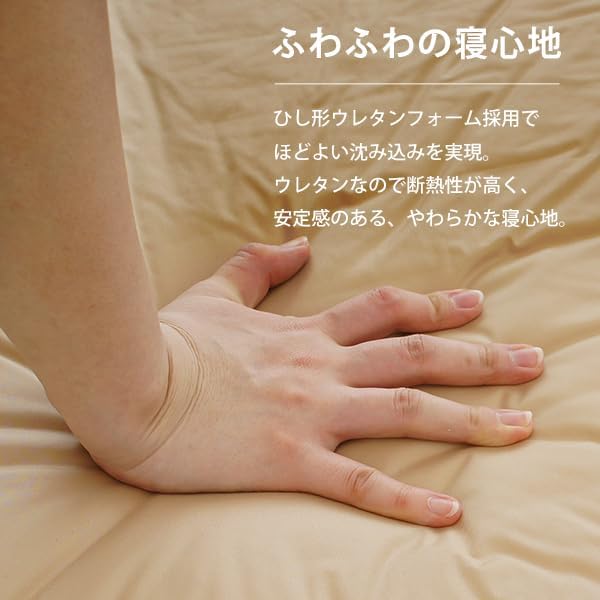 ウレタン製で弾力性が高く、安定感があるやわらかな寝心地。低反発マットのように身体が沈み込みません。