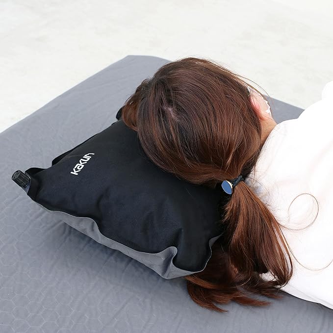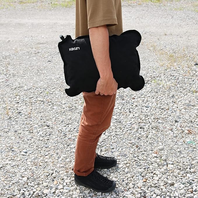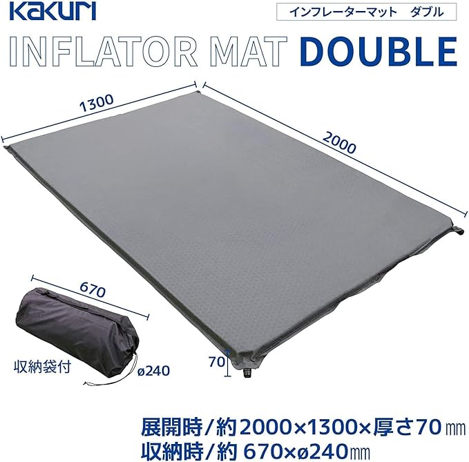 KAKURI インフレーターマット 7cm厚 アウトドアマット リバーシブル グレー/ブラック 自動膨張 収納袋付