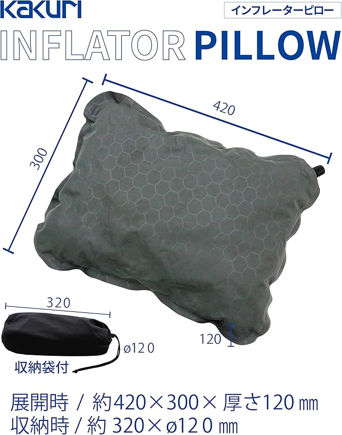 使用時サイズ:【インフレーターマット】縦200 横130cm 厚7cm、【インフレーターピロー】約42 30 厚12cm