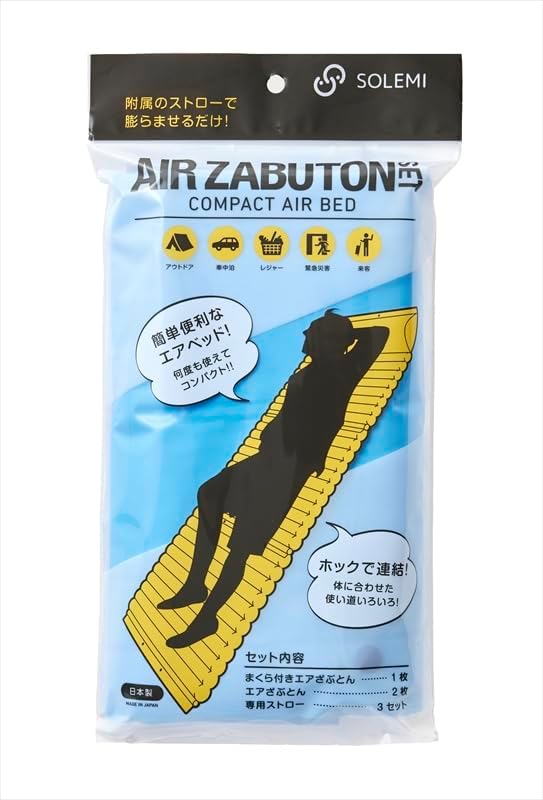 ストローで空気を入れることができる災害備蓄用エアマット。 1枚で赤ちゃん、2枚でお子様、3枚つなげて大人がゆっくり休めるエアベッドになります。 実際に利用した時の運用しやすさを重視しております。 連結方法は、簡単なホックになります。耐荷重は1枚当たり100kg。