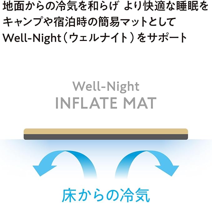 バルブを開けるだけで自然に空気が吸入されるインフレートマット 幅が51cmのコンパクトタイプ。 内部ウレタンフォームは上部・下部で異なる二重構造で1.0kgの軽量化。 上部はクッション性と通気性そして軽量・収納性を併せ持つハニカム構造。 ソロ・ツーリングキャンプ向き。 下部は軽量・耐久性を重視したダイアモンドカット構造 キャリーバッグ付き。