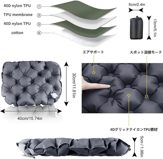 シックなダックグレーカラーが雰囲気を損なわず、40Dナイロン+TPUの高耐久性で汚れもタオル拭きでOK! (本体サイズ:42x31x5cm/素材:40Dナイロン+TPU) 行機の硬い座席もスポーツ観戦の長待機も、「お尻救済クッション」が劇的改善! 超薄型インフレーターマットのような即席快適性で、アウトドア クッションとしてキャンプ/釣りはもちろん、