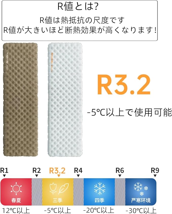 Naturehike エアーマット 厚手約8cm 高R値3.2 低温-5℃以上 キャンプ マット 超軽量