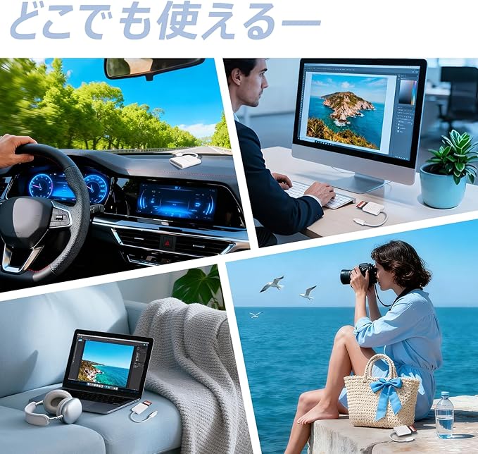 【sdカードリーダー】このカードリーダーはSDカードポートを搭載しているため、カードを直接挿入するだけで、ファイルの同期、転送、共有を手軽に実現できます。