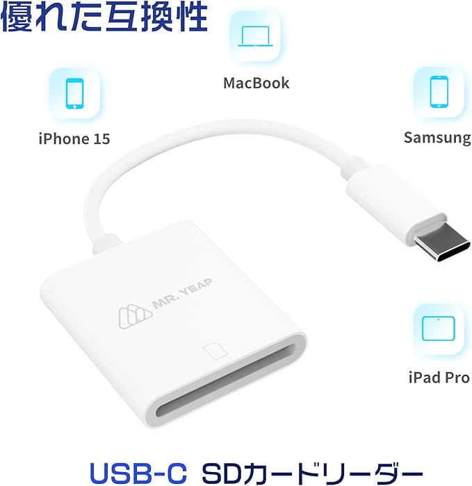【幅広い互換性】このカードリーダーは、Type-Cポートを搭載したAndroid、iPhone、Windows、Mac、iPadなど、Type-C搭載の多様なデバイス間で、シームレスなデータ交換を実現します。