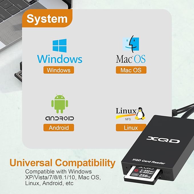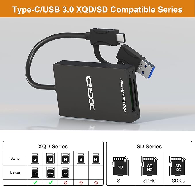 【xqd カードリーダー 幅広い互換性】XQDカードを搭載したNikon D4/D5/D500カメラなどのプロフェッショナルデバイスに最適、XQDカードスロットはXQD Sony GシリーズとMシリーズXQDカード、Lexar 2933x、Lexar1400x USB Mark XQDカード、SD /SDHC/SDXC series.XQD および最大容量2TBのSDカード用のSSDカードスロットと完璧です。 Windows/Mac OS/Linux/Chrome系、USB Cインターフェイス搭載のスマートフォンに対応しています。 注:Sony N、S、HシリーズXQDカードはサポートされていません。