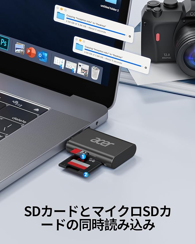 Acer USB-C SD カードリーダー SD 4.0 2-in-1 SD/SDXC/SDHC/Micro SD (TF)/Micro SDXC/Micro SDHC用 UHS-II対応 iPhone15/16、iPad Pro/Air、MacBook Pro/Air、Androidノートパソコン、タブレットに対応 タイプC 高速転送 メモリーカード リーダー (ブラック)