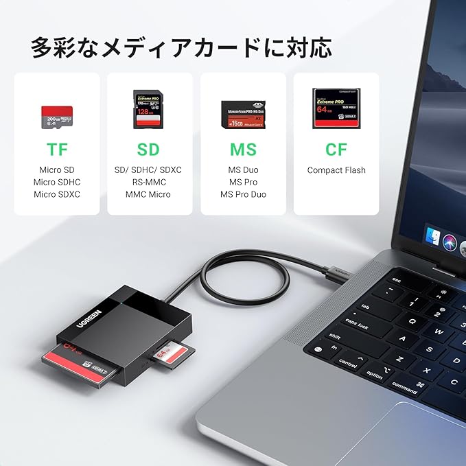 UGREEN カードリーダー USB C 4in1 SD microSD CF MS 4枚カード同時に読書 2TB Max 高速転送 SD SDXC SDHC MM CRS-MMC UHS-Iカード Windows Mac OS Android 対応