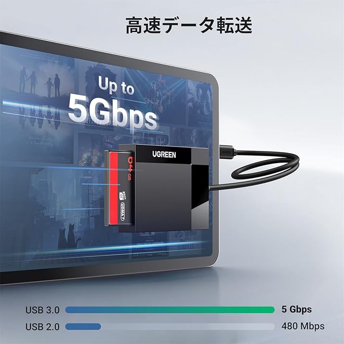 高速5Gbpsデータ転送:USB3.0 Type-C転送仕様に対応しており、動画や音楽、大量の写真など大きなデータもストレスなく、高速かつ安定して転送できます。