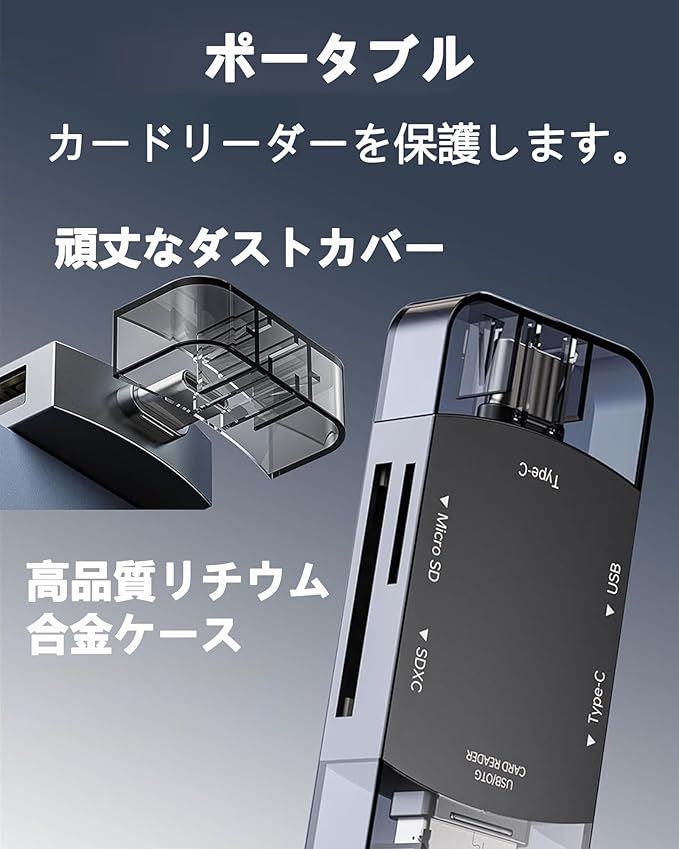 特徴 4-in-1 USB 3.0 SDカードリーダー, USB+Type C+Micro——SD+TF+USB+Type C
