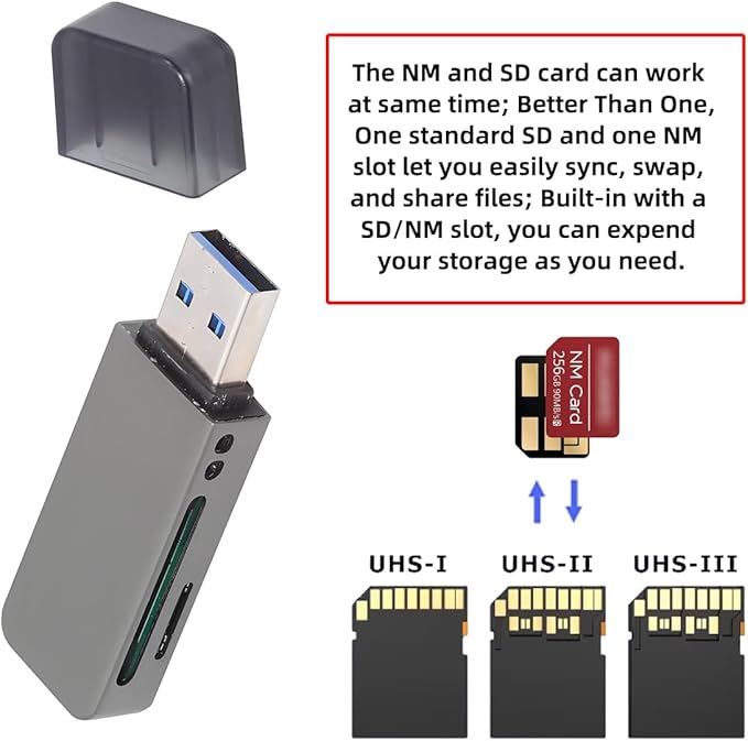 USB 3.0 ナノメモリ NM カード & SD カードリーダーライター、カメラ & ラップトップ & タブレット & Mate シリアルフォン用