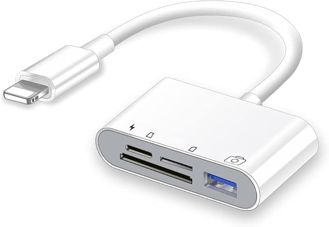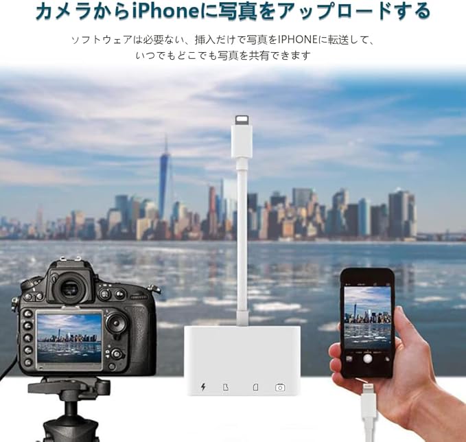 【4-in-1 SDカードリーダー】:4-in-1 iOS用 SDカードリーダーは1つのSDカードポート、1つのMicro SDカードポート、1つのUSBポート、1つの充電用IOSコネクタメスをサポートしています。写真やビデオをiPhone やiPadに簡単に転送できます。データを転送中しながら充電することもできます