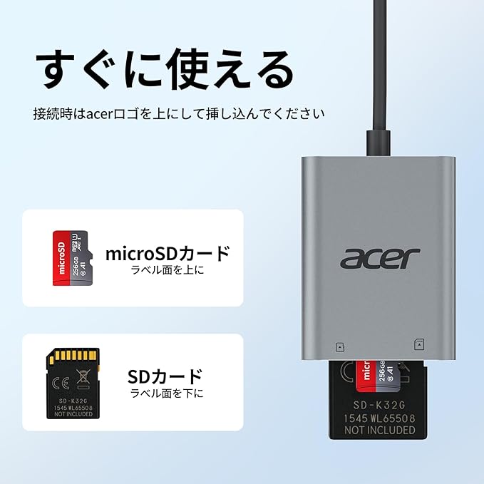 カスタマーサポート - Acerは、品質と顧客満足度を最優先に考えています。SD カードアダプター タイプCには12ヶ月間のサポートを提供しています。互換性や使用方法についてご質問がある場合は、サポートチームが高品質な体験をご提供できるようお手伝いいたします。