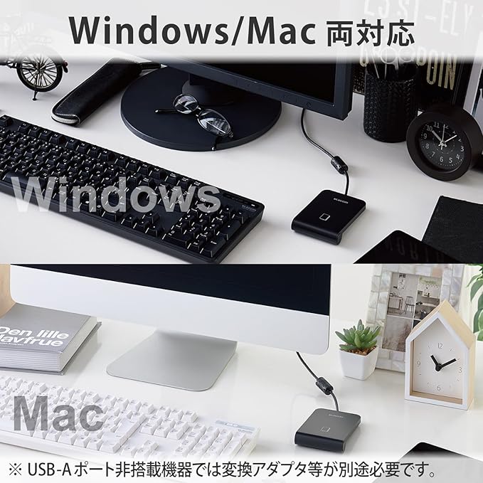 ■WindowsのほかmacOSにも対応しており、幅広い環境での使用が可能です。※読み取りに使用するアプリの対応情報も併せてご確認ください。※MacBookなどUSB Type-Aコネクターがない端末ではType-C ハブ等をご使用ください。