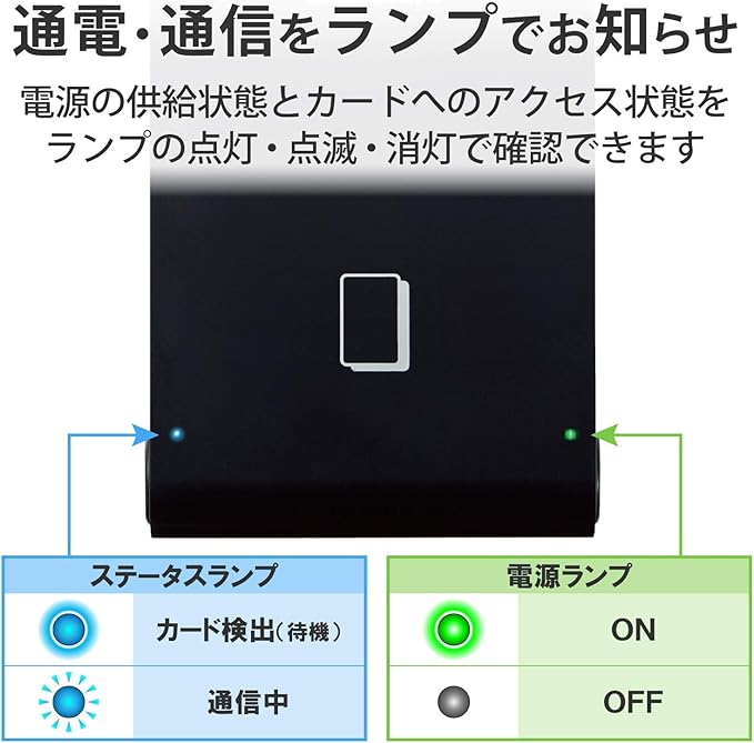■電源の供給状態と、カードへのアクセス状態がわかるランプを装備しています。