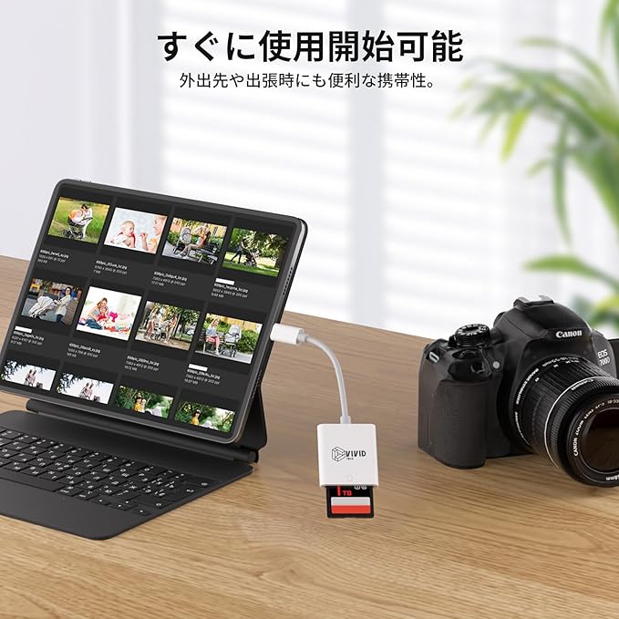 【超高速伝送】最新のスマートチップを搭載したsd カードリーダーは、USB TYPE-Cポートを通じて超高速データ転送を実現し。VIVID TECHのsd カードリーダーは、品質の高いコンテンツの取り扱いでも遅延なくスムーズに作業できます。写真の高速ダウンロード、スムーズな動画編集、迅速なファイル転送をお楽しみください。