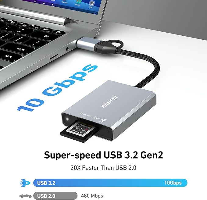 ✅【CFexpressカード用10Gbps超高速】: BENFEI CFepxpressカードリーダーは、CFexpressメモリカード(タイプA)用に特別に設計されており、CFexpressカード用のUSB3.2 Gen2(10Gbps)超高速データ転送をサポートします。10Gbpsの高速を実現するには、デバイスのUSB/USB CポートがUSB 3.2 GEN2の速度に到達する必要があります。注:最終的なデータ速度は、カードとUSBスロットのタイプによって決まります。