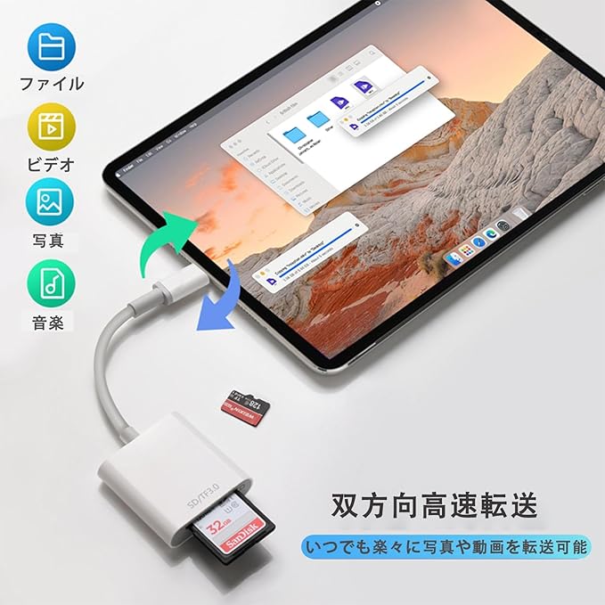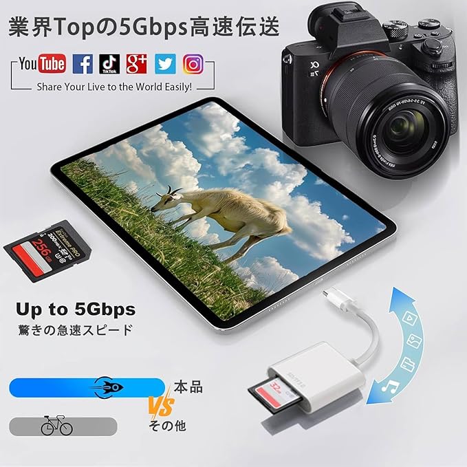 ⚡【5Gbps高速・双方向転送】普通480Mbpsの転送速度より10倍速い速度、短時間でsdカードから写真や動画をスマホに直接読み込みできます。SDカードからスマホへデータ転送するだけでなく、スマホからSDカードへのデータ転送も対応でき、双方向の転送はできます。カメラで撮影した写真を簡単シェアでき、スマホの容量不足を解消するにもできます。日常に非常に便利で欠かせないアイテムです。
