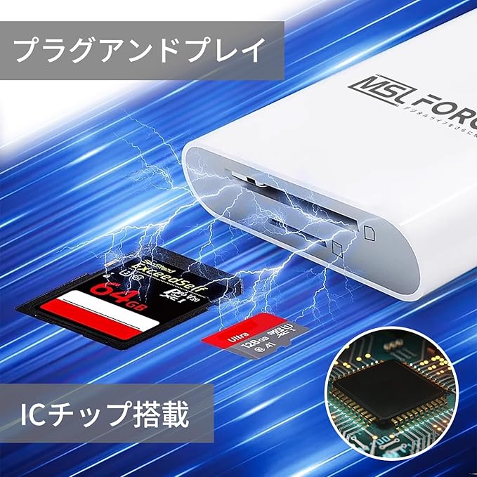 【双方向高速データ転送】スマートチップを内蔵し、双方向高速データ転送が可能です。最大容量2TBまでのカードに対応しています。SD、SDHC、SDXC、MMC micro、RS-MMC、microSD、microSDXC、microSDHCのカードが使用可能です。