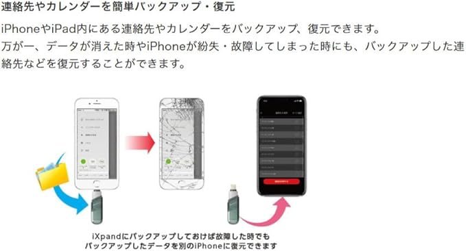 連絡先やカレンダーを簡単バックアップ・復元 iPhoneやiPad内にある連絡先やカレンダーをバックアップ、復元できます。 万が一、データが消えた時やiPhoneが紛失・故障してしまった時にも、バックアップした連絡先などを復元することができます。