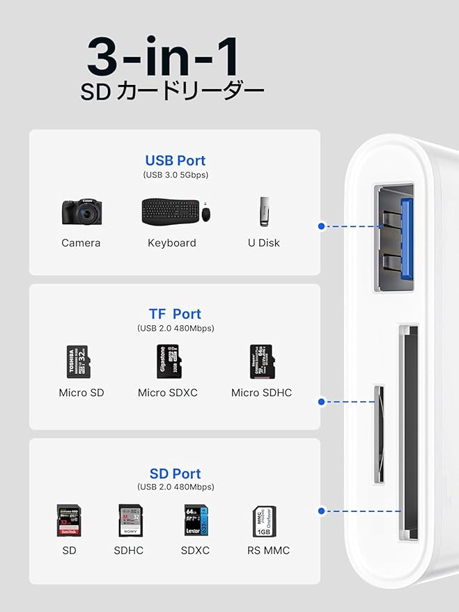 特徴 3-in-1カードリーダー