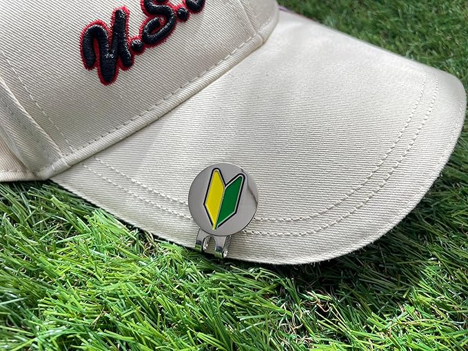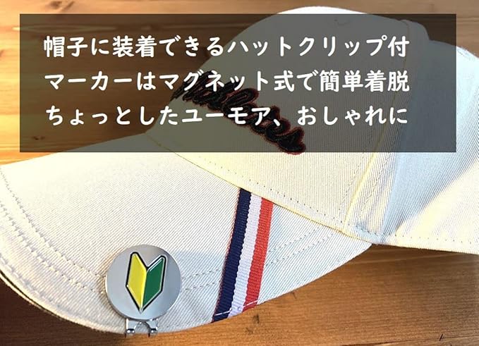 ゴルフマーカー ハットクリップ付き マグネット 初心者マーク 若葉マーク 合金製 ゴルフコンペ 景品 プレゼント E0007
