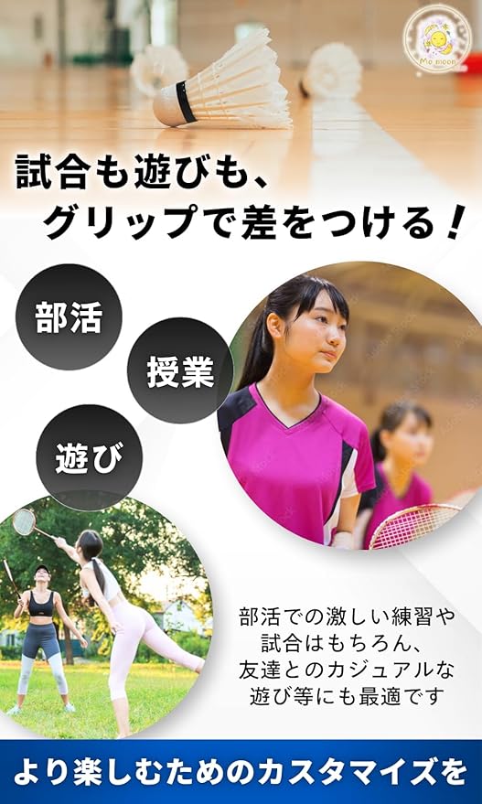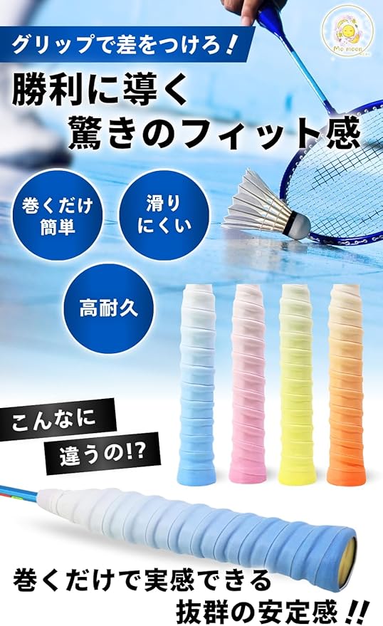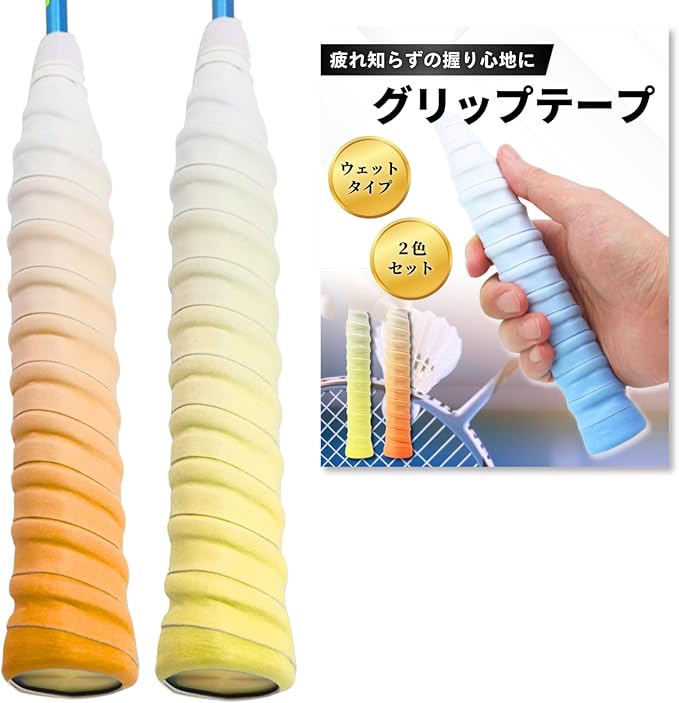 mo moon バドミントングリップテープ ゴルフ 釣り竿 テニス グラデーションカラー 2枚セット 滑り止め 衝撃吸収 吸水性の良い