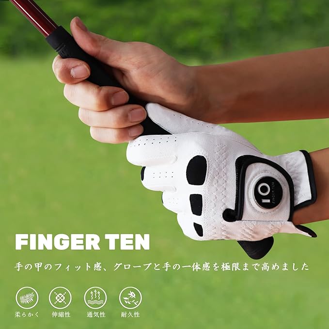 ゴルフグローブ メンズ 天然皮革と合成皮革の組み合わせ 柔らかめ 伸縮 通気 耐摩耗 滑りにくいグリップ 雨 汗に強い 全天候モデル ゴルフマーカー付き NQYZ-023