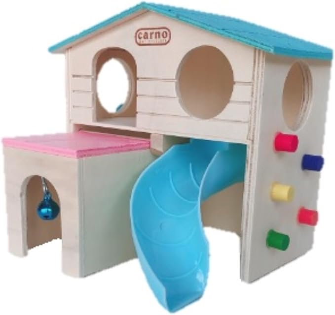 King's Arm ハムスターハウス 木の家 ケージ 家 2階建 小動物 アスレチック 滑り台付き (水色)