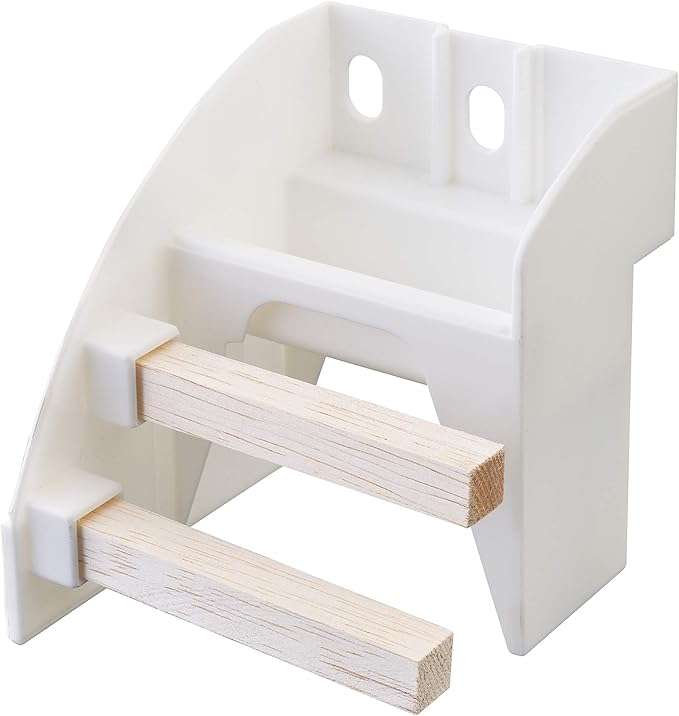 登ってかじってストレス発散!! 簡単に付け替えられる広葉樹のかじり木ステップ。上のお皿にごはんが入れられます。 ●付け替えカンタンかじり木ステップ ●かじりやすい固さの広葉樹 ●ごはんも置ける! ●金属・接着剤不使用 ●差し込むだけでカンタンに交換! ●ケージに固定できる ●低アレルギー素材の広葉樹を使用 ●ワイヤーケージでも使用OKの取り付け器具採用 組立時サイズ:約 幅8.9 奥行き11.4 高さ10.8cm セット内容:完成品1セット、交換用バトン1本 <使い方>本製品を飼育ケージの中に入れ、付属の部品で固定し取り付けてください。●ワイヤーケージに設置●ハムスターが届く位置を確認し、取付け位置を決めてください。バトンを本体にセットします。本体のネジを外し、飼育ケージの内側からはさんで固定してください。中心の穴の使用をおすすめします。※ワイヤーの間隔が25mm以上のものには使用できません。※本製品を設置する場所は、水平が保たれる安定した平面を選んでください。 ●グラスハーモニー(別売)に設置●バトンを本体にセットします。ボトル取付け穴の専用キャップを取り外してください。本体のネジを外し、ケージの内側から凸ネジで本体とスペーサーを一緒にはさみ、外側から凹ネジを回して固定してください。 ※ケージ内に置いて使用することもできます。 ※バトンが短くなったり汚れが目立ち始めたら新しいものに交換してください。(ハーモニーバトン5本入(別売)) ※天然素材のため、形状や木目、木の色の違いがありますので、ご了承ください。